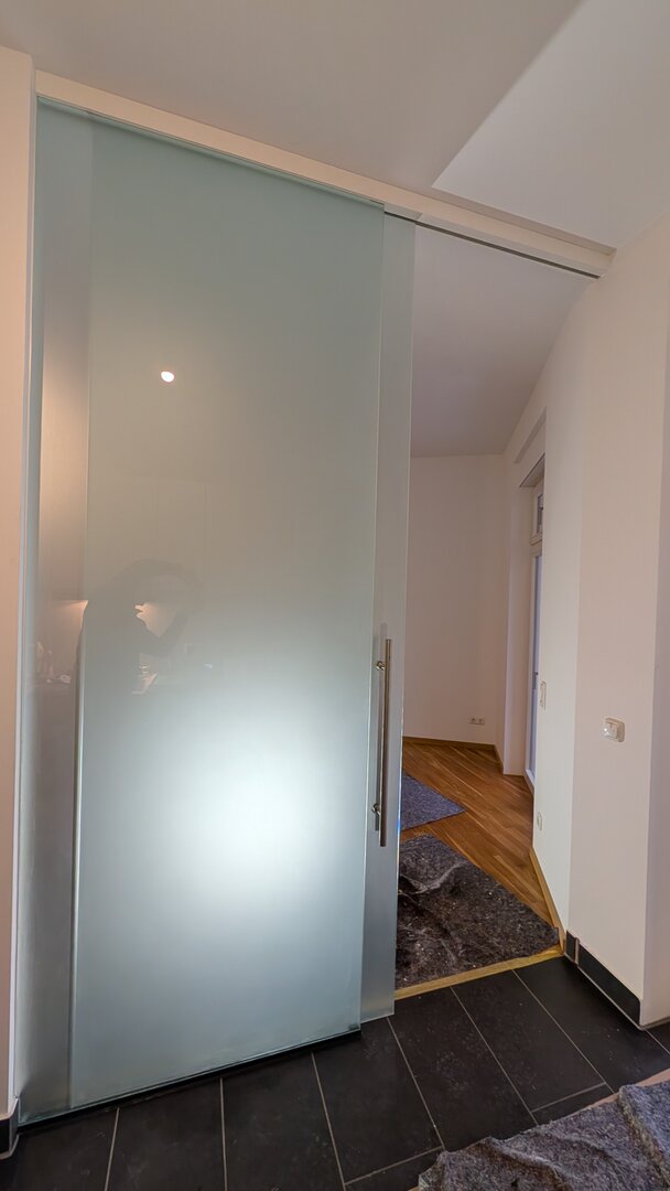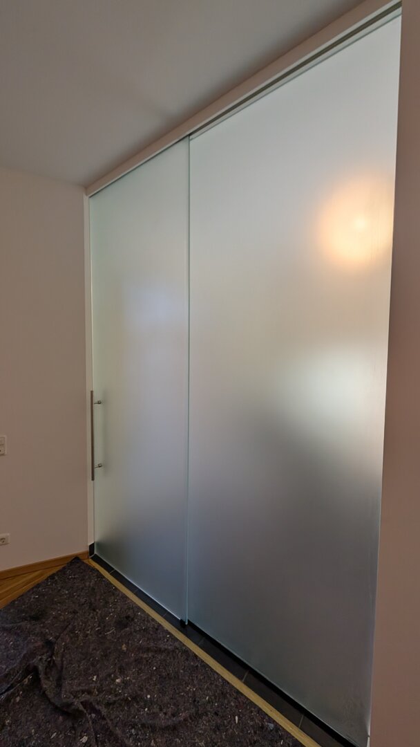 Die Laufschienen sowie das Glas bieten wir in diversen Oberflächenbearbeitungen an. Die Scheiben fahren dank eines Softlocks leise und sanft in die Parkposition ein.